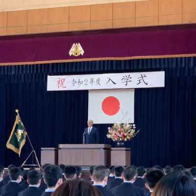 令和2年4月8日(月)13:00〜母校体育館に於きまして令和2年度入学式が執り行われ、学校長より173名の新入生が入学許可されました。新入生の皆さんご入学おめでとうございます。式はコロナウイルス感染症予防のため、短縮縮小で行われ来賓はPTA会長のみとし、同窓会からの来賓は無しとしました。