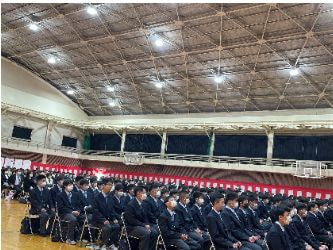 令和5年4月10日、13時から母校体育館に於いて令和5年度入学式が行われ、164名の新入生に入学許可証が授与されました。4年ぶりに来賓参加も緩和され、連山会からは田坂会長、柳原副会長、檜垣副会長の3名が参加しお祝いの言葉をかけさせて頂きました。