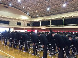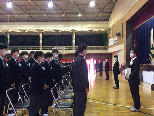 令和3年3月1日(月)10:00~ 卒業式母校体育館において第69回卒業証書授与式が執り行われました。コロナ禍ですので来賓二人、在校生なし時短という形での開催となりましたが厳粛な雰囲気の中、157名の生徒が巣立っていきました。