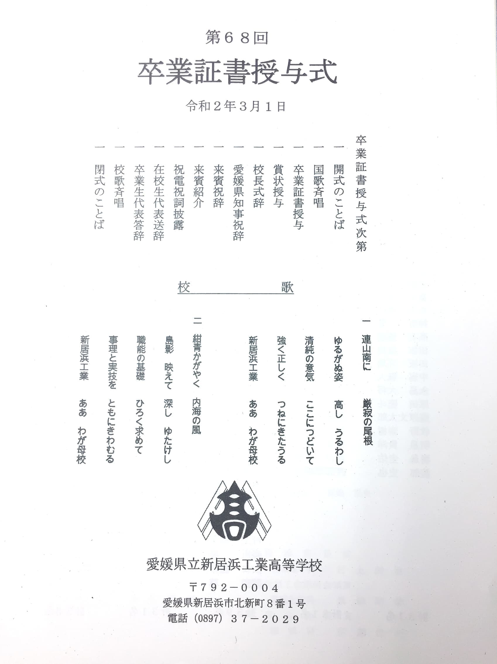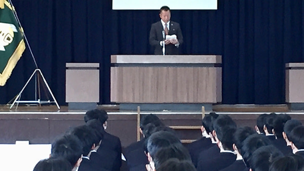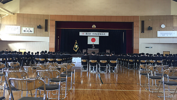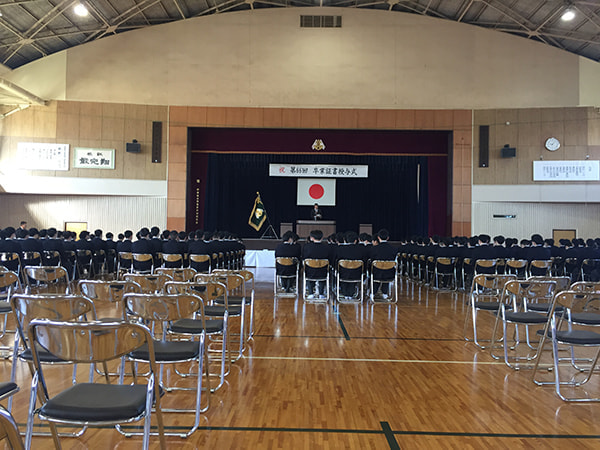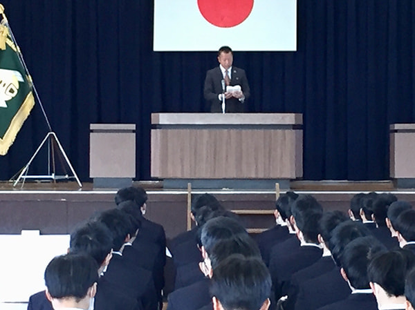 2/28(金)、9:05から 母校体育館に於きまして、一色学校長をはじめ、多数の教職員来賓の中、令和元年度 新居工同窓会入会式が執り行われました。田坂会長が式辞を述べ、一色学校長に祝辞を頂き、無事170名が入会いたしました。