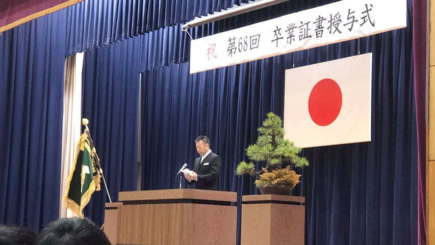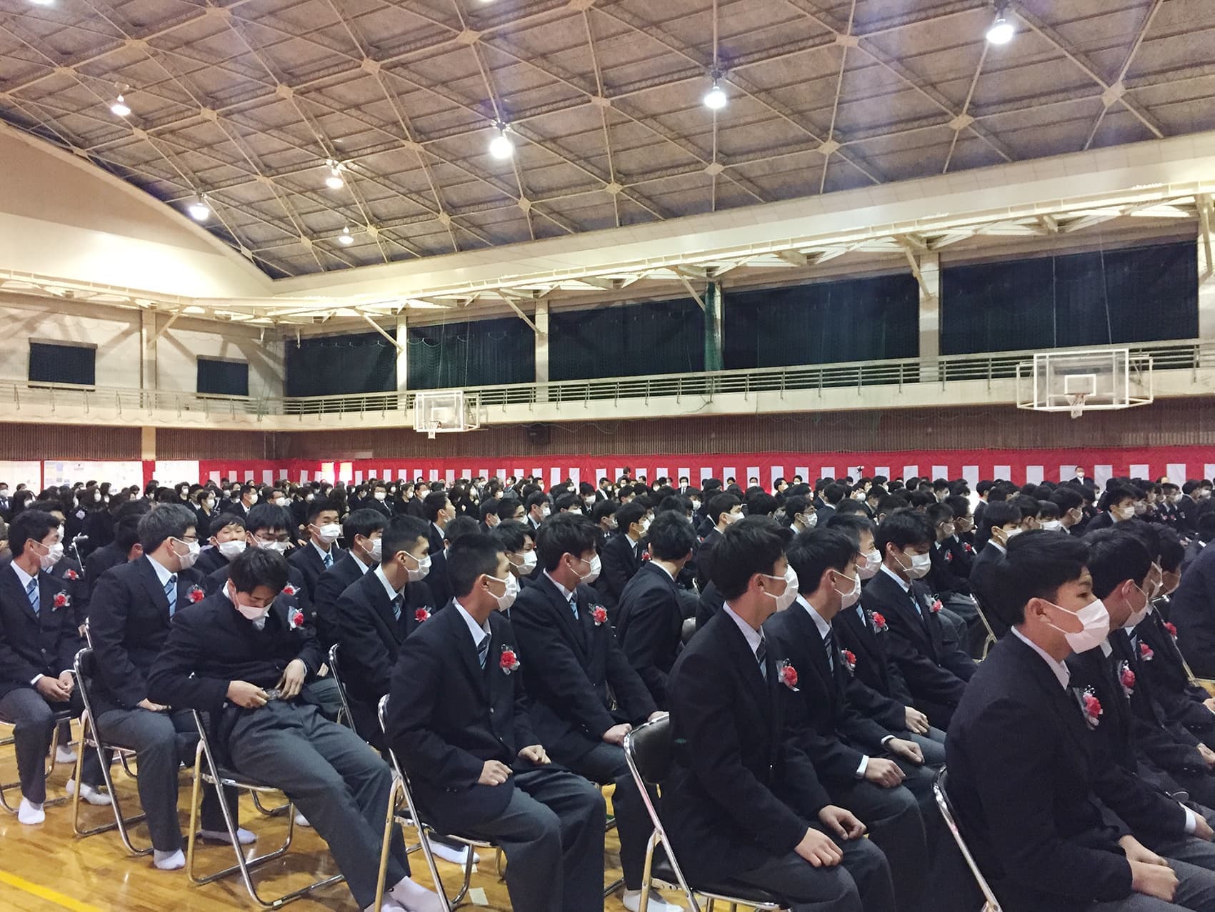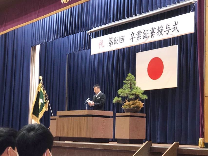 母校体育館に於いて、第68回卒業証書授与式が行われました。コロナウイルス感染予防のため、在校生なし、マスク着用、来賓も最小限、時短で進行するいう対処の中、厳粛に執り行われました。同窓会から来賓として、田坂会長、坪井副会長、伊藤副会長、、石川事務局長が参加、田坂会長より、表彰授与と祝辞が送られました。170名の卒業生の皆さん、卒業おめでとうございます。今後の活躍を期待しております。