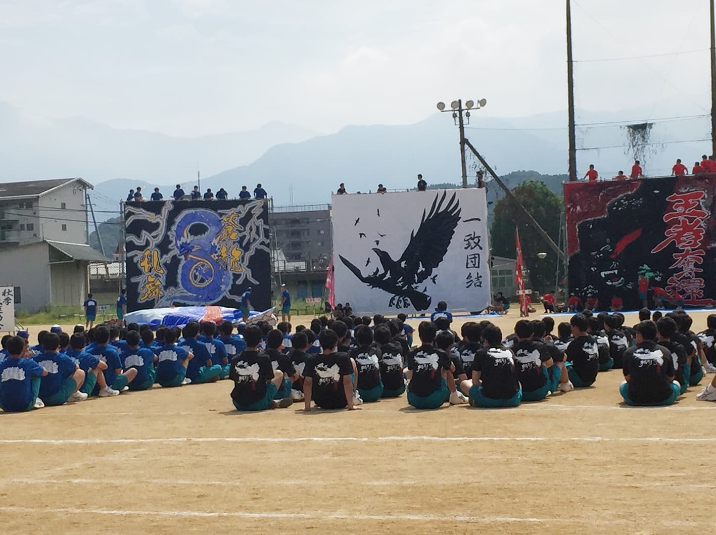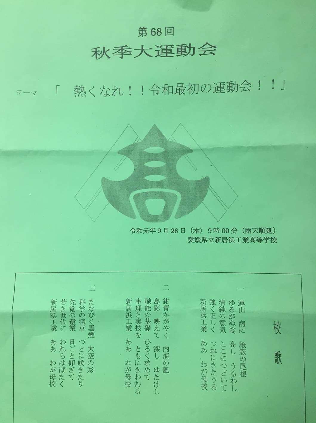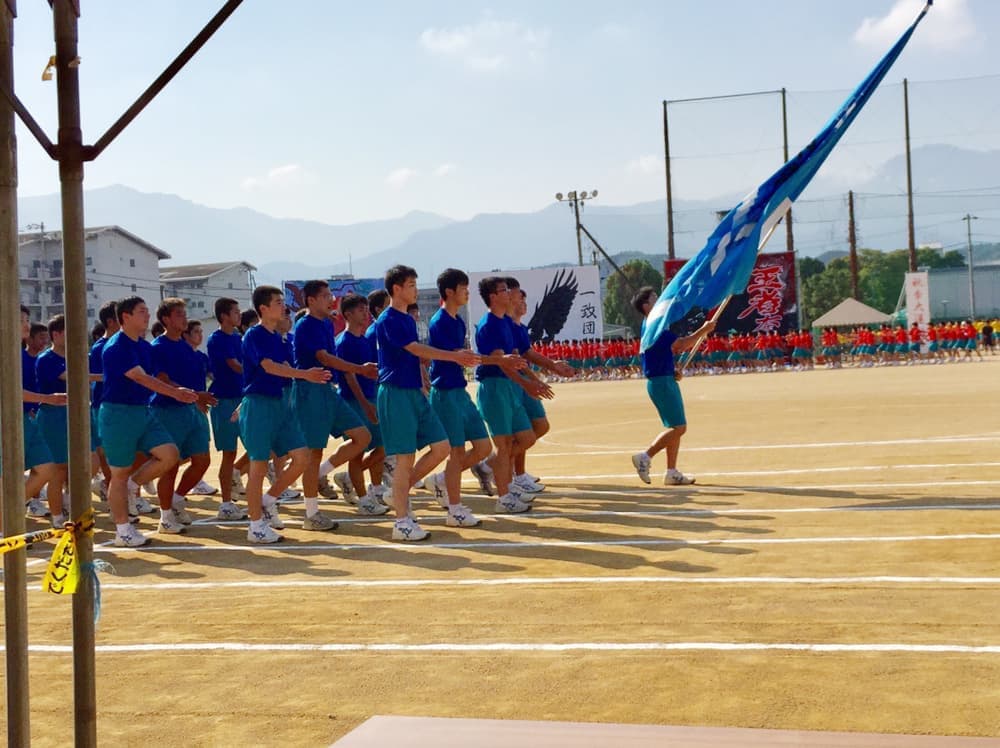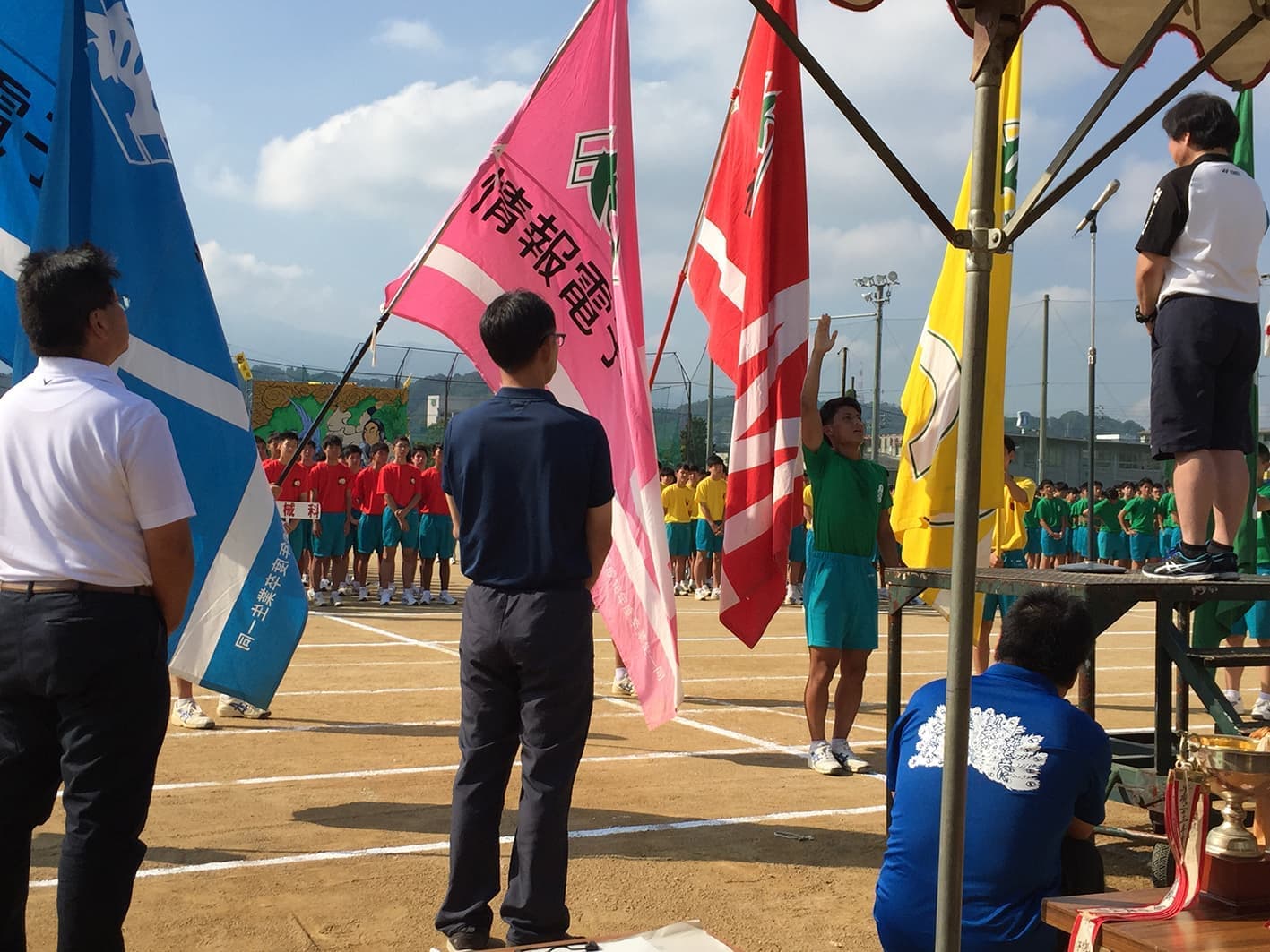 9/26(木)素晴らしい秋晴れの中、第68回新居工運動会が行われました。同窓会から、田坂会長、坪井副会長、檜垣副会長の3名が来賓参加し、来賓、教職員競技「パン食い競争」にも参加しました。生徒達の一生懸命競技をしている姿に感動、素晴らしい運動会でした。