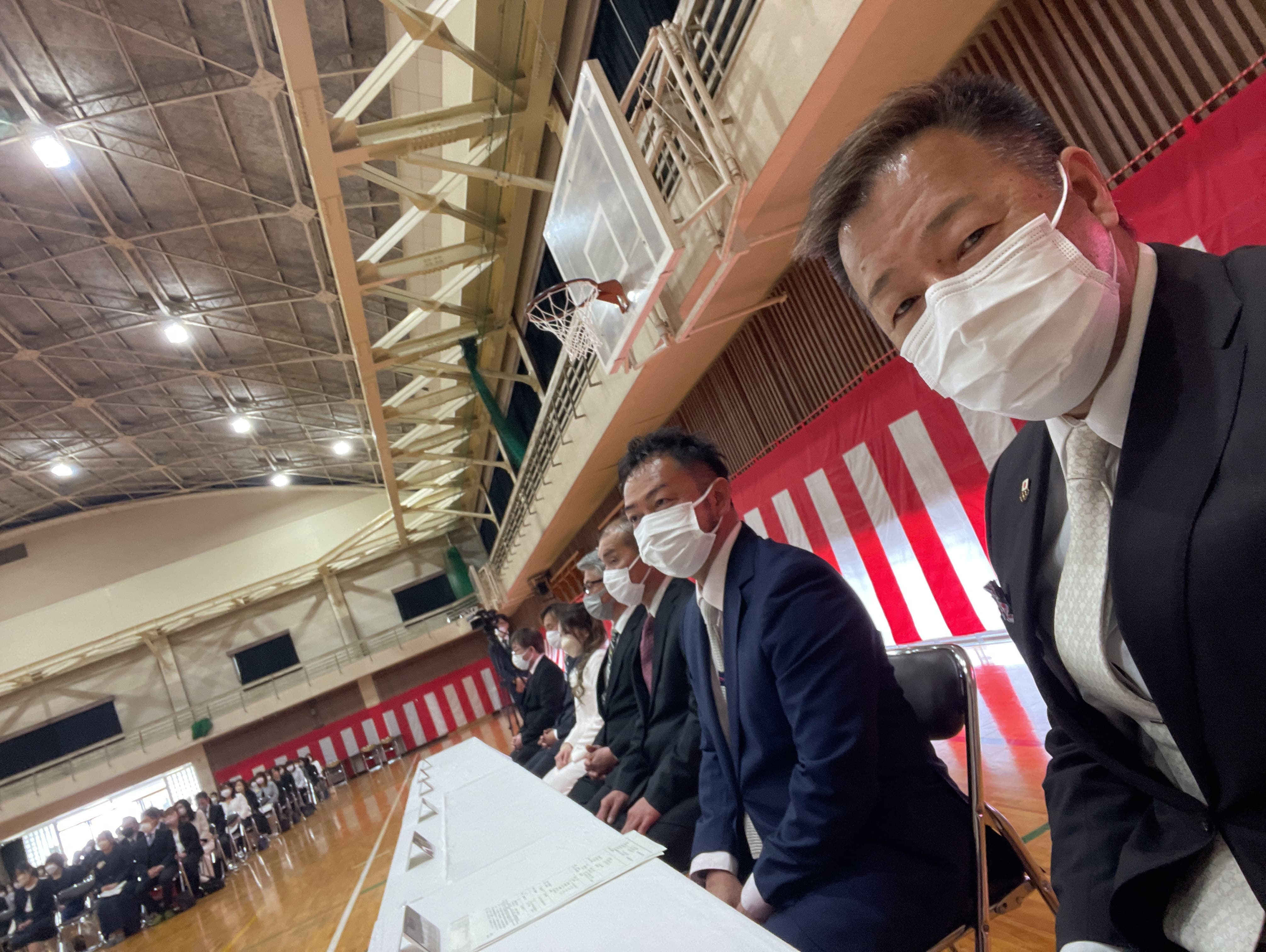令和5年4月10日、13時から母校体育館に於いて令和5年度入学式が行われ、164名の新入生に入学許可証が授与されました。4年ぶりに来賓参加も緩和され、連山会からは田坂会長、柳原副会長、檜垣副会長の3名が参加しお祝いの言葉をかけさせて頂きました。