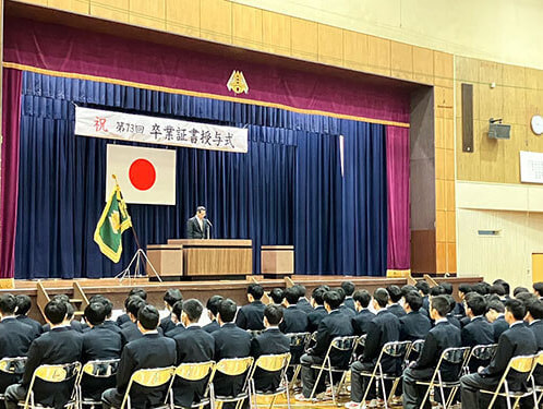 3/1(土)10:00〜同体育館において第73回卒業証明書授与式が行われました。厳粛な雰囲気の中とても素晴らしい式でした。卒業生の皆さんご卒業おめでとう御座います。