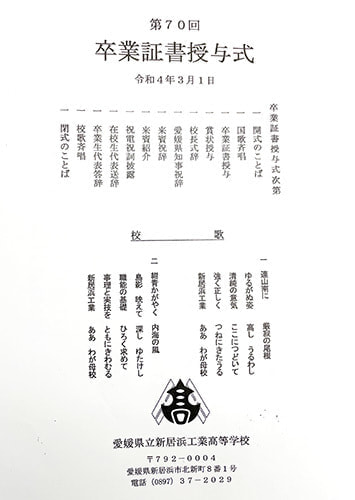 令和4年3月1日(火)10:00~ 卒業式母校体育館にて、第70回卒業証書授与式が執り行われました。今年もコロナ禍ということもあり、来賓は2人、在校生は無しで自宅でのリモート観覧で行われましたが、厳粛な雰囲気の中とても良い式でした。171名の卒業生の皆さん卒業おめでとうございます。