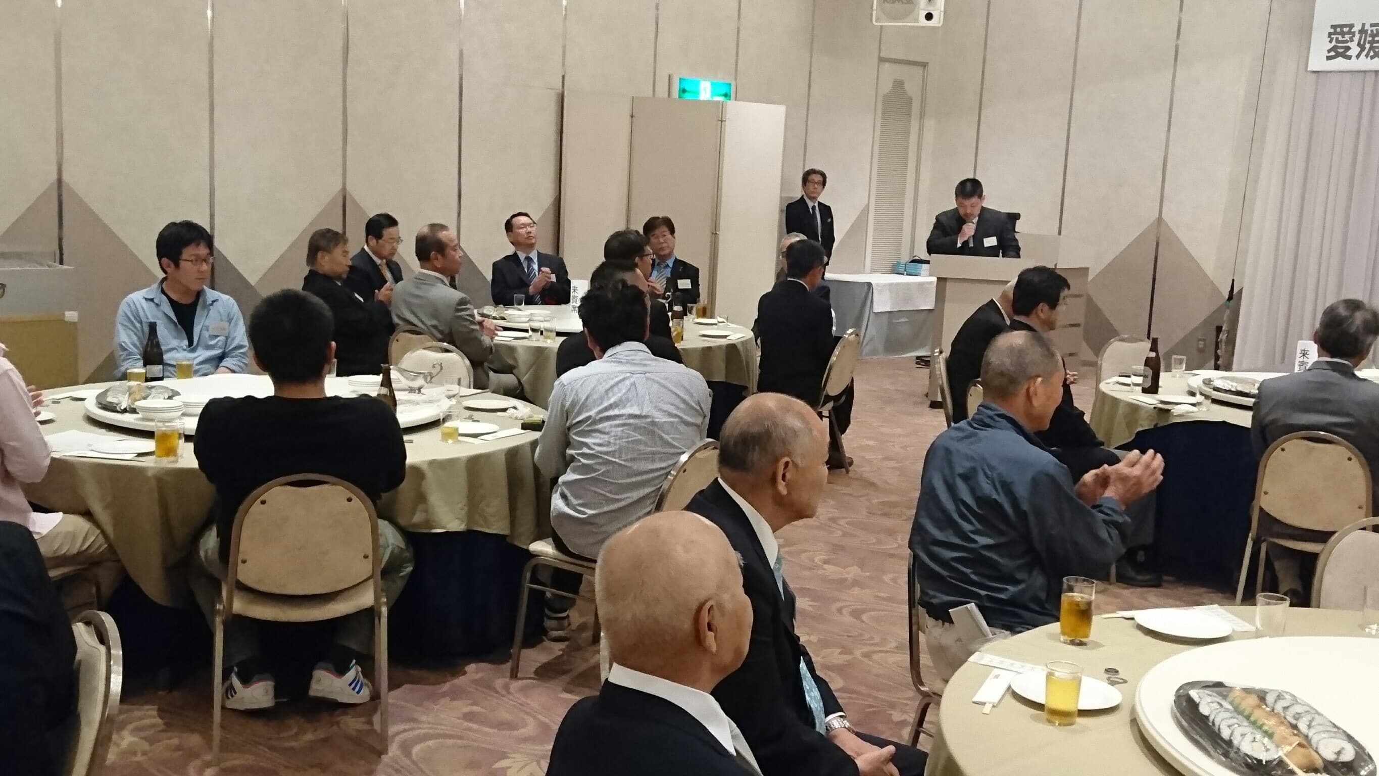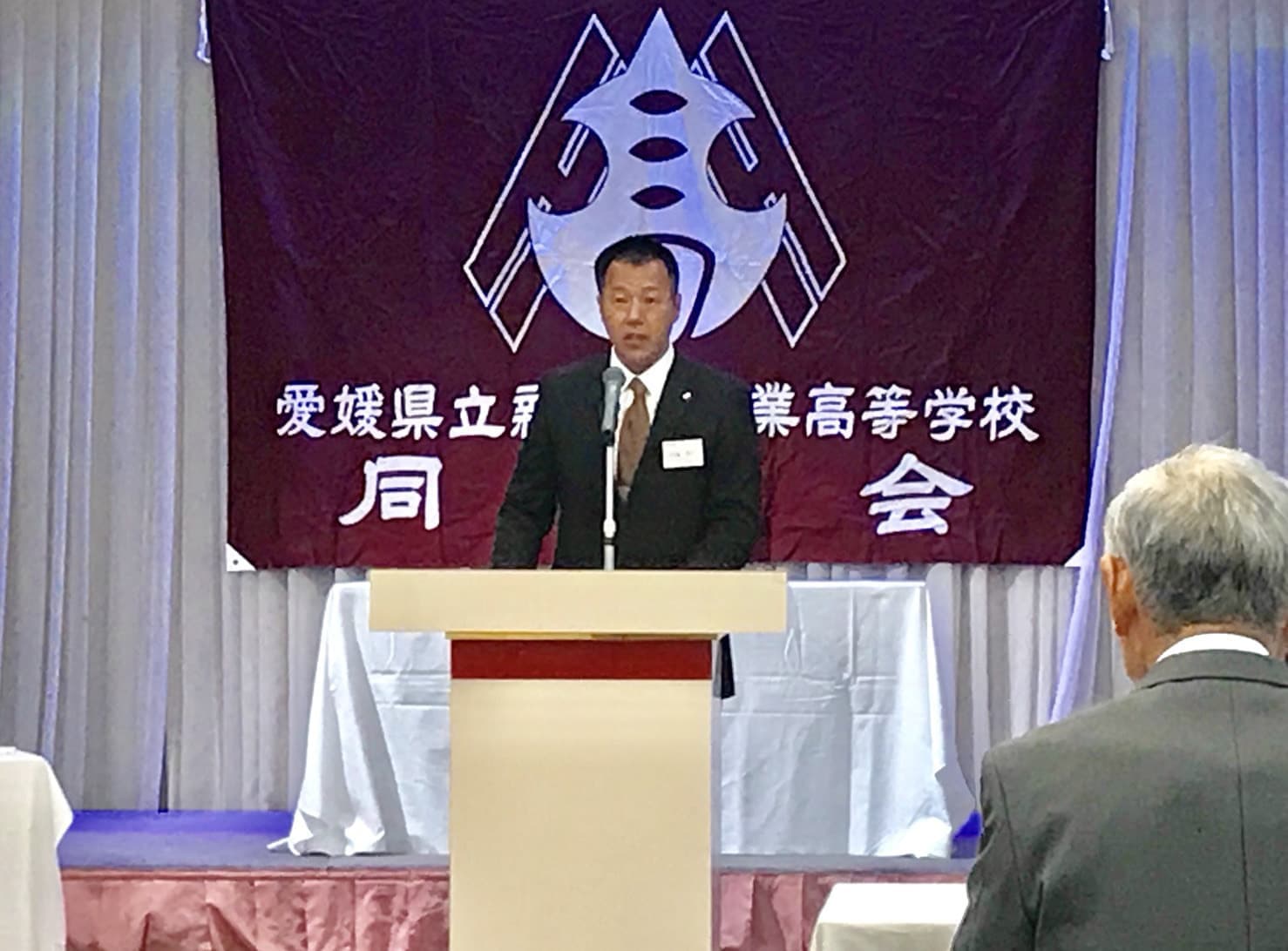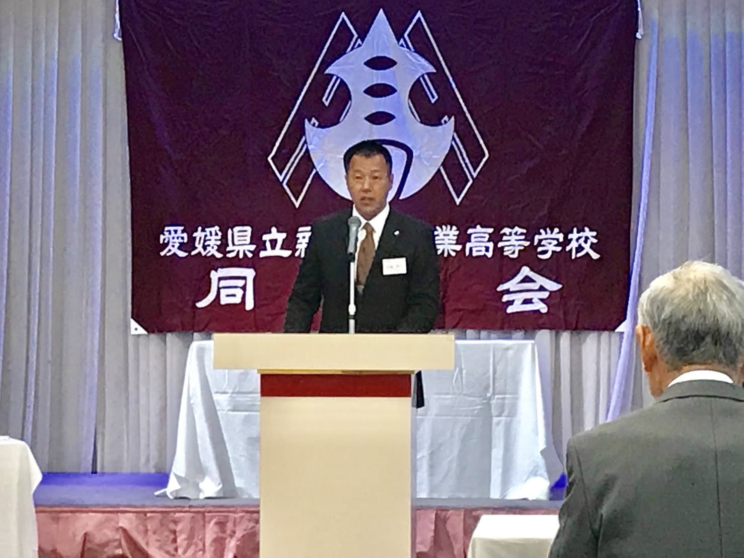 平成30年5月19日土曜日午後18時から、H30年度 愛媛県立新居浜工業高等学校同窓会定例総会が、執り行われました。今年は役員改選があり、8年間会長職を務められた田窪前会長に替わり、田坂新会長が誕生しました。