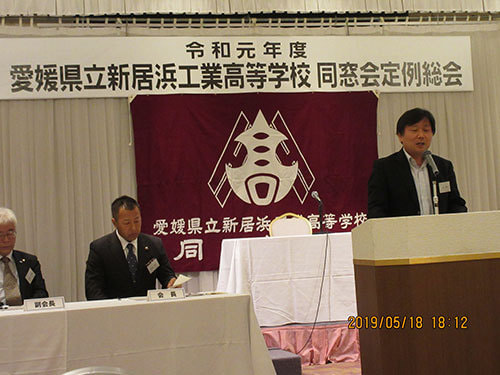 令和元年5月18日土曜日18:00~ユアーズに於いて、令和元年度愛媛県立新居浜工業高等学校同窓会総会が執り行われました。